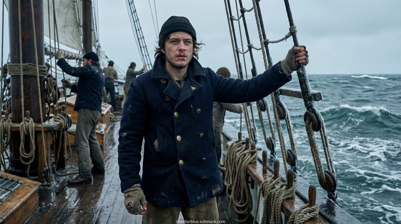 Cold salt spray stings his face as Thomas emerges on deck for morning watch. The sky is iron-grey, the sea a deep slate green with whitecaps stretching to every horizon. The Dei Gratia heaves through moderate swells, her canvas straining. He takes his position near the foremast, eyes scanning the emptiness as he has done for three weeks. The bosun passes, barking orders about chafed lines. Thomas’s fingers are already numb despite the wool mittens his mother knitted. He stamps his feet on the holystoned planking. Breakfast was hardtack softened in coffee so bitter it tasted of bilge. His stomach growls. The watch stretches before him, four hours of cold and spray and nothing.