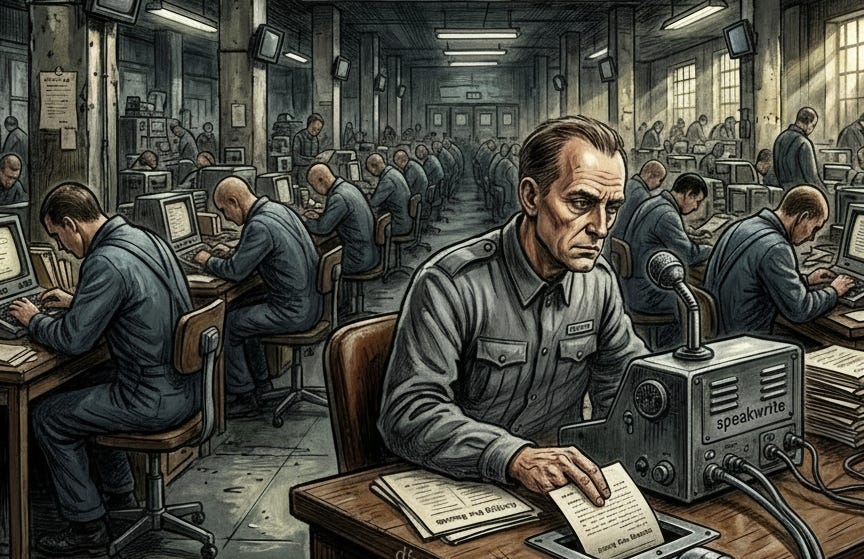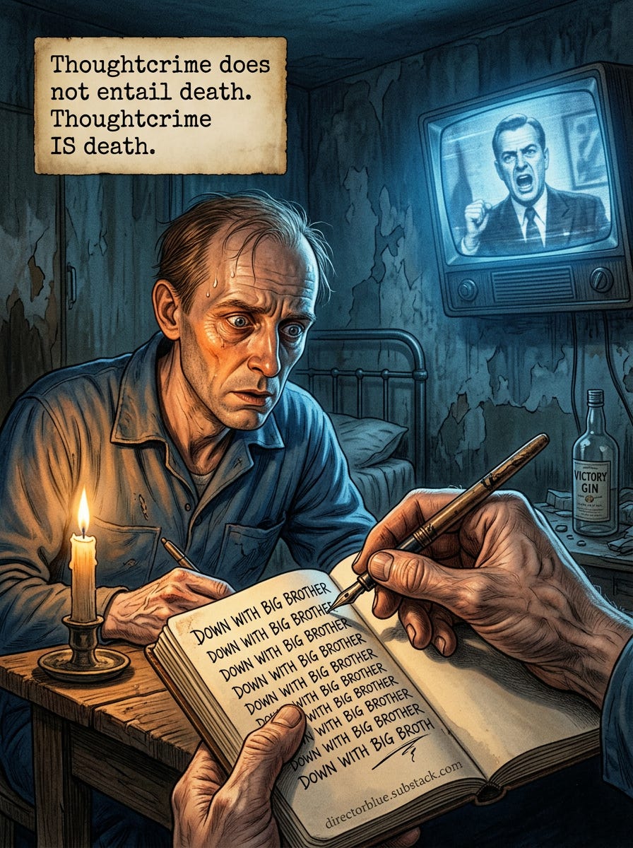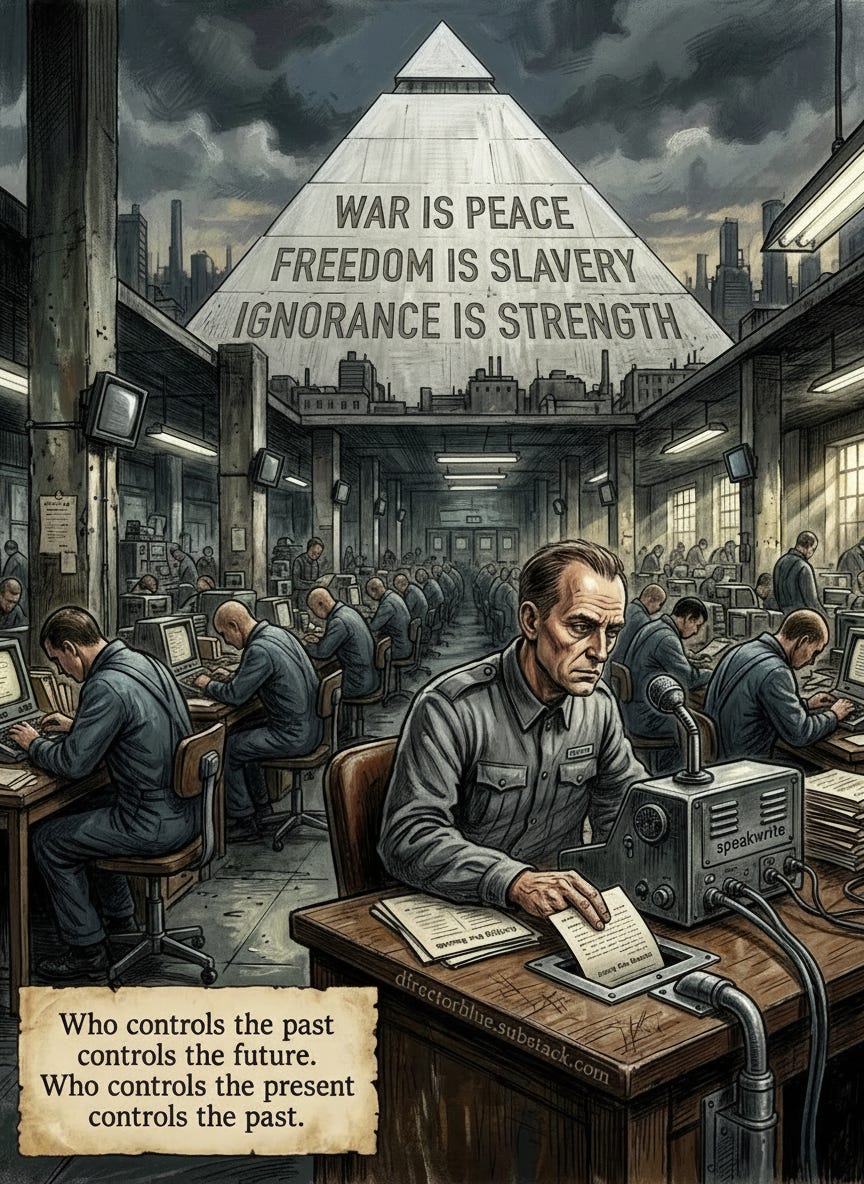 Orwell didn’t write 1984 as sci-fi. He was writing a parable of the real things he’d seen happening in the world. The surveillance, the propaganda, the rewriting of history, the twisting of language so that people can’t even find the words to disagree — none of it was made up. He was describing the natural pattern of governments to become corrupt and tyrannical.
