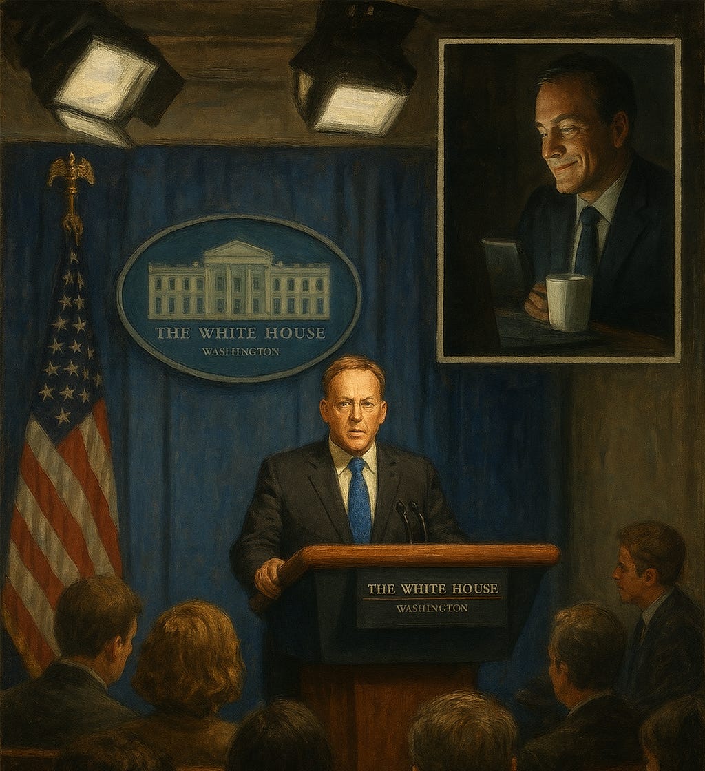 The VP’s press secretary stood at the podium, reading from prepared remarks with practiced cadence.
