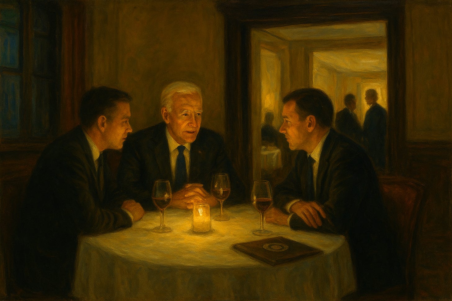 At 7:47 PM, Vice President Joe Biden walked into the private room, Secret Service detail discreetly positioned outside. Warm smiles, firm handshakes, the practiced choreography of Washington networking.