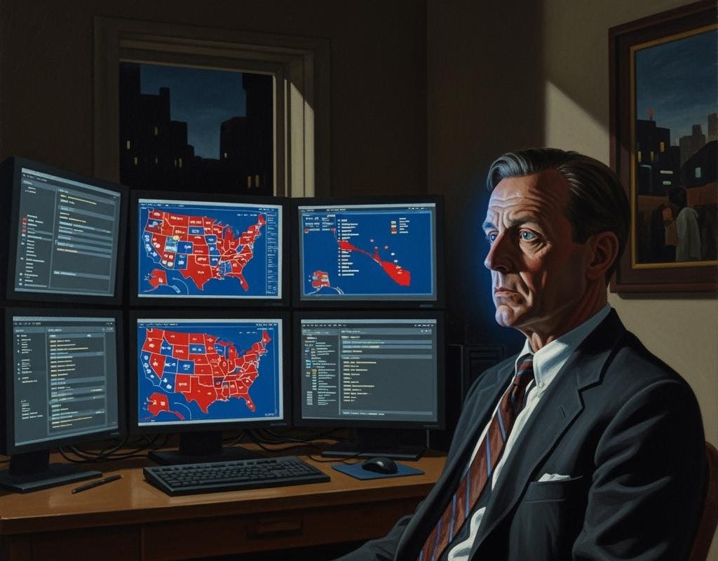 The room stilled. Nods. Quiet agreements. Preparation for the inevitable Clinton victory.