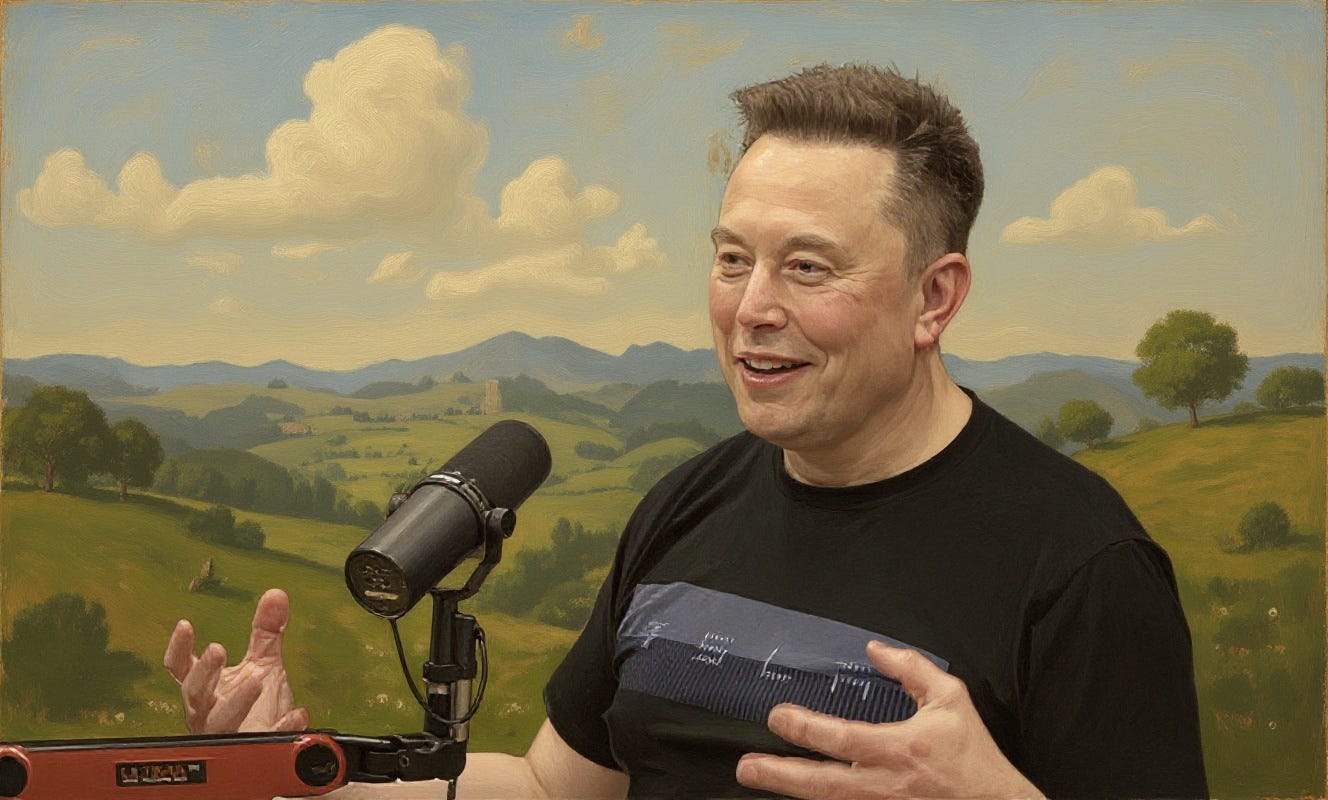During workouts, I like to listen to podcasts. They could be educational or just fun — comedy shows like Kill Tony. Every couple of weeks, depending on the guest, it’s the eponymous Joe Rogan Experience. Episode #2404 featured the irreplaceable Elon Musk.