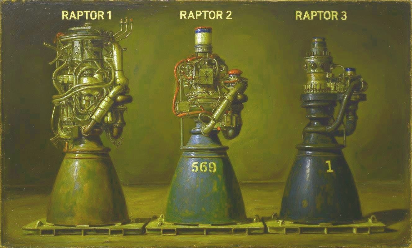 Raptor Engine Evolution: From Raptor 1 to 3, thrust has nearly doubled, with