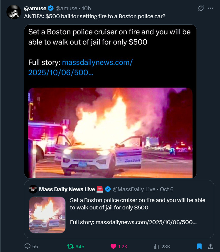 Top 20 Posts - Oct. 8, 2025Antifa is just an ‘idea’? Ideas don’t set cities on fire or beat people with bike locksDoug RossOct 08, 2025124ShareShareSubscribeShareSubscribeShareSubscribeShareVote! Make Scott Presler proud of us!ShareSubscribeSubscribeShareClick for Part I and all parts. The reviews are in. Obama’s pissed.This is Part I:SubscribeShare